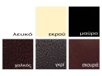 - Διατίθεται σε 6 χρωματισμούς: κρεμ, καφέ σφυρήλατο, γκρι σφυρήλατο, καφέ σκούρο σαγρέ, μαύρο και λευκό.