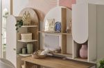 Η κρεμαστή ραφιέρα είναι μια κομψή και πρακτική λύση αποθήκευσης που συνδυάζει υπέροχα την κρεμ απόχρωση και το φυσικό χρώμα του ξύλου.
