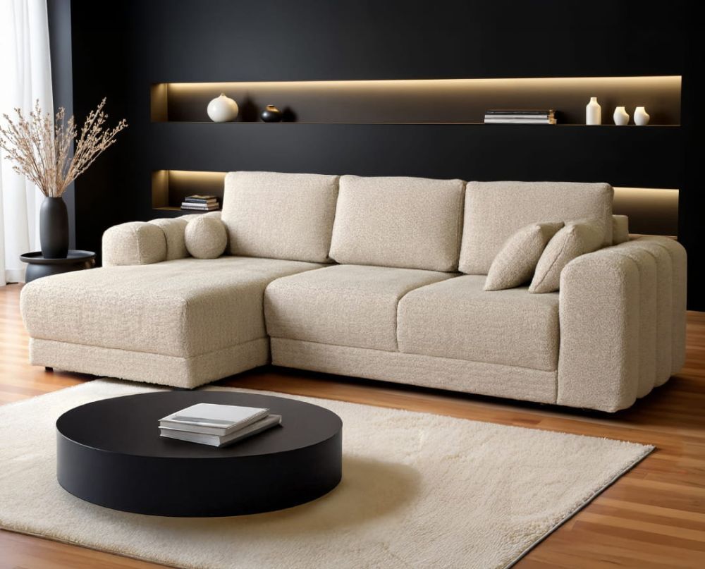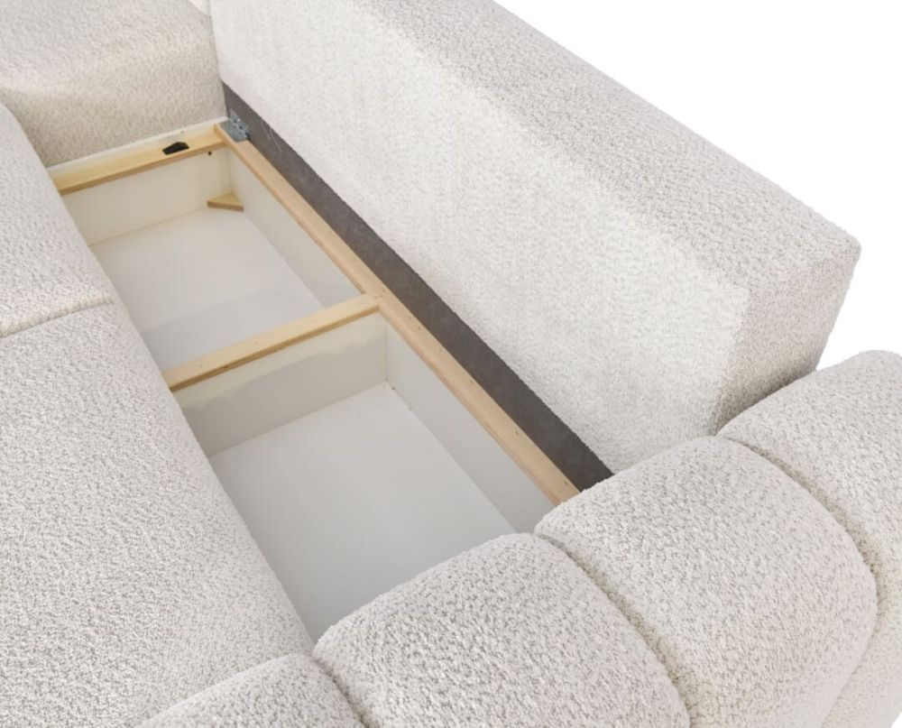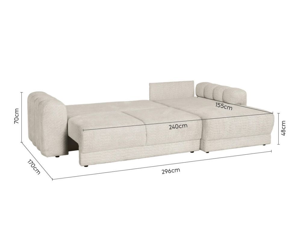 Αμφίδρομος γωνιακός καναπές με κρεβάτι και αποθηκευτικό χώρο.